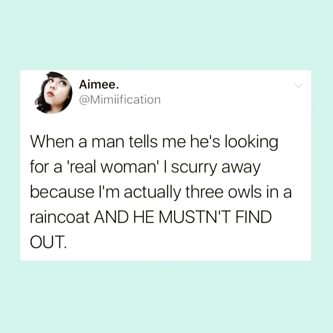 #funnymemes #funny #real #woman #women #truth #owls #raincoat #joke #hilarious #feminism #feminist #girls #girl #twitter #tweet #quotes #quote #quoted #qotd #quotesoftheday #instagood #fff #followforfollow #followformore #sfs #kalidesautelsreads