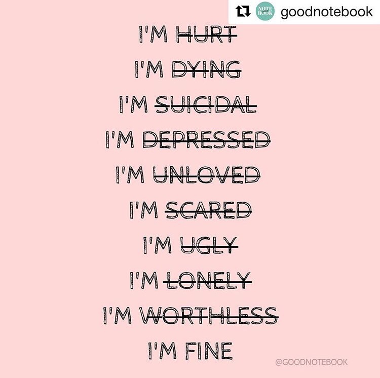 When someone says they are fine, sometimes there are different things going through their heads. Sometimes “I’m Fine” can be a cover for all sorts of self abuse. But in honour of World Suicide Day, if you are hearing any of these things when you aren’t speaking out loud please, please know that you ARE ok. You ARE loved. You BELONG.