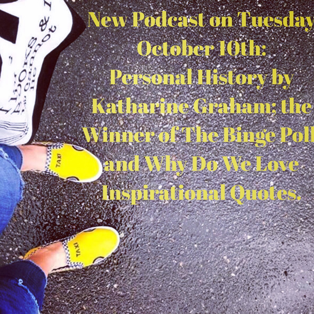 New Podcast on Tuesday October 10th: Review: Personal History by Katharine Graham; Announce: the Winner of The Binge Poll; and Discuss: Why Do We Love Inspirational Quotes.