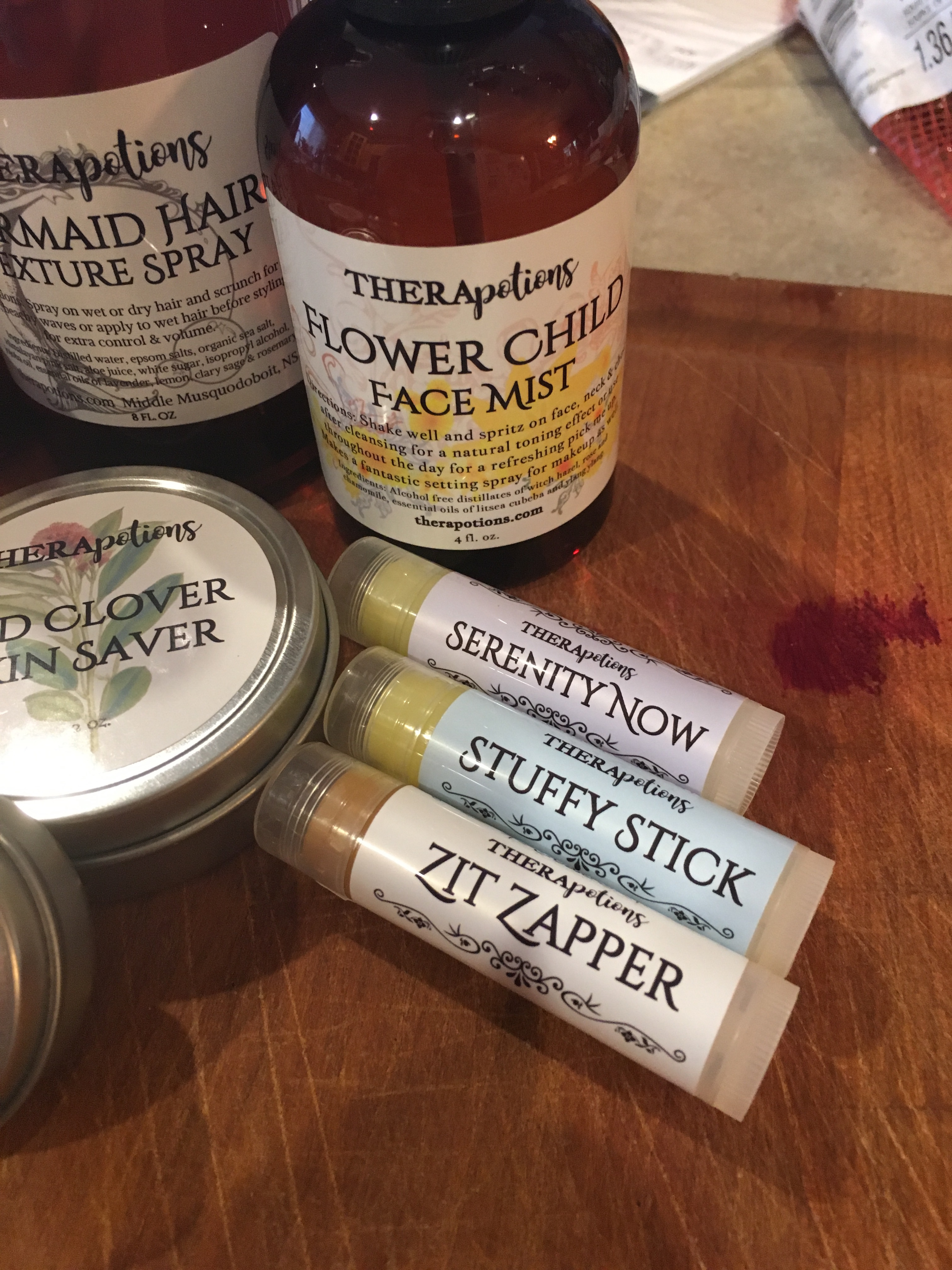 My sister in the maritimes has been extolling the virtues of THERApotions for ages and I am excited to have this delivery today! She has strongly recommended these natural salves, the stuffy stick, the crappy cranky period balm, the mermaid hair and more.