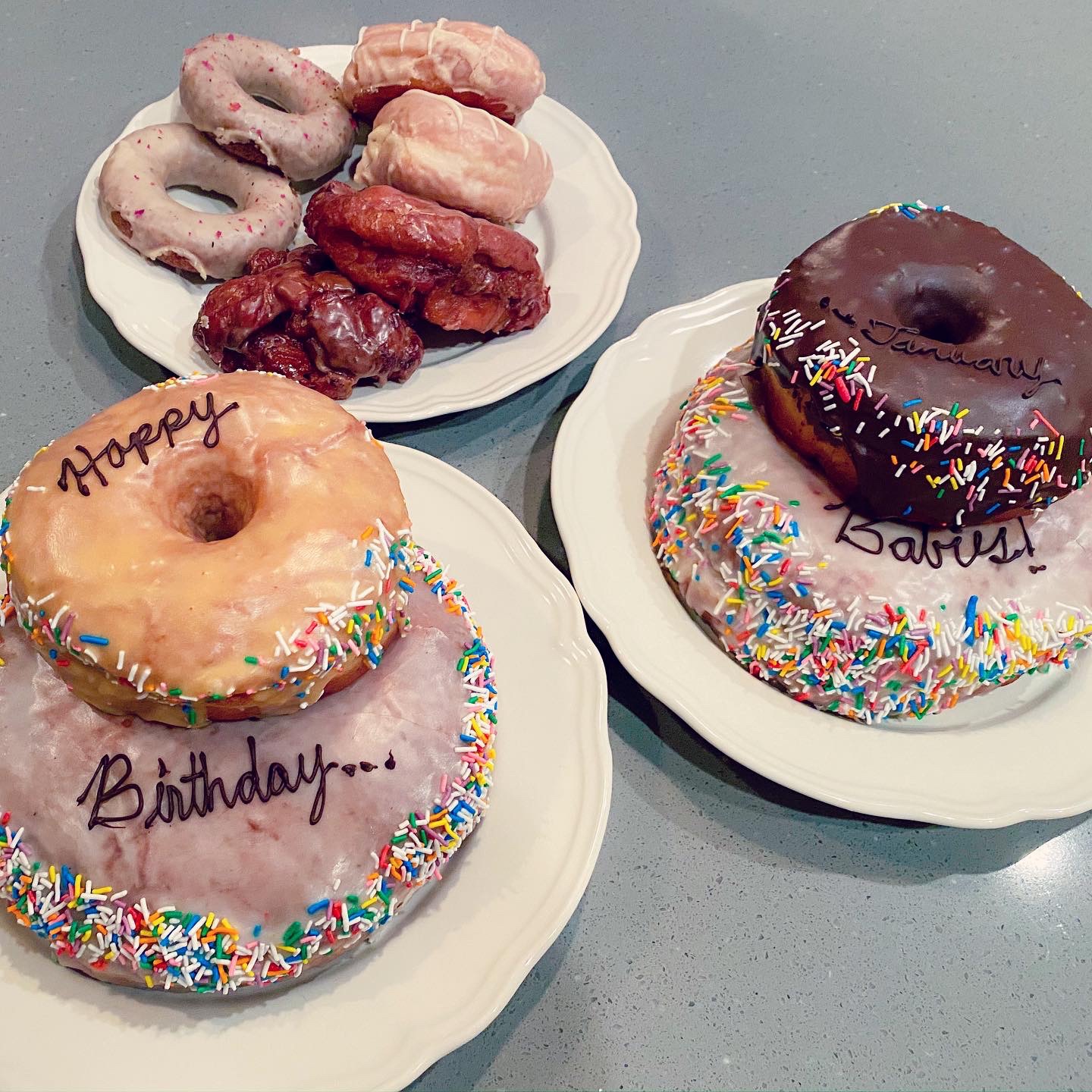 We celebrated – 3 human and 1 puppy January baby birthdays, a five year anniversary, a final step in a cancer journey – friends that are also family. Fancy cloths, coordinating denim, lipstick and heels, sport jackets and giant doughnuts!