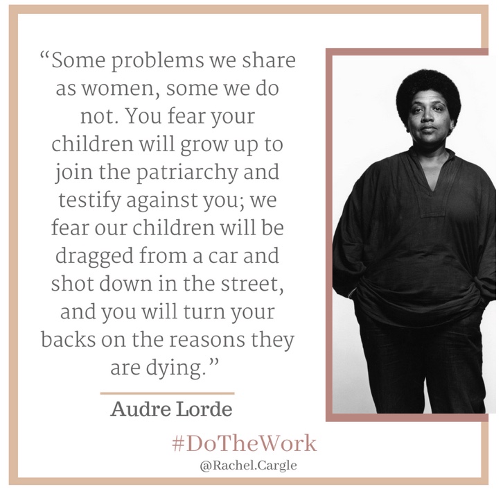 In particular, coincidentally aligning with yesterday’s post about white feminism, we are asked to make not of intersectionality and how white feminism is a further cornerstone of white supremacy.