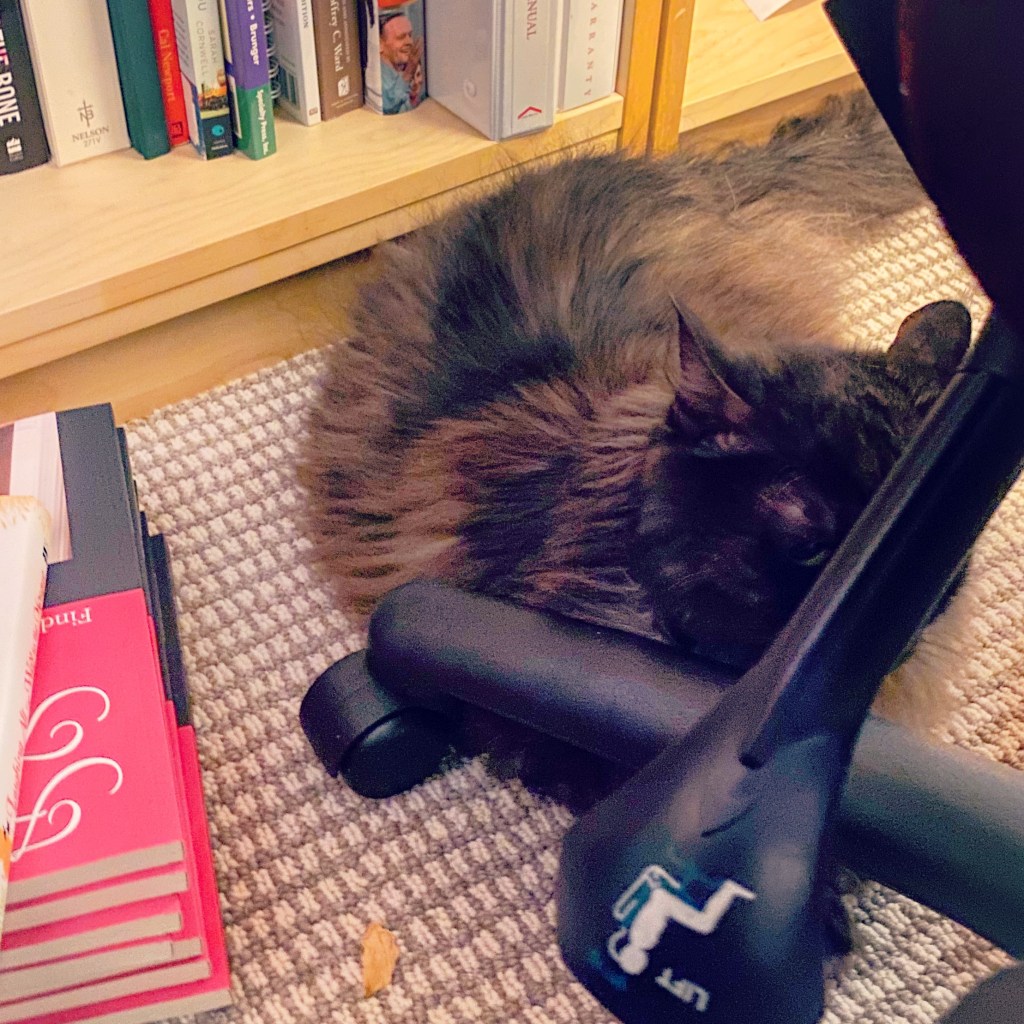 I know! I’ll hide behind the back of her desk chair! Then I am with Mama AND hiding! I’m so smart!” ~ Timon